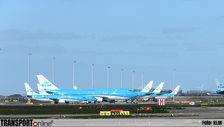 Groot deel KLM-vloot op Schiphol geparkeerd