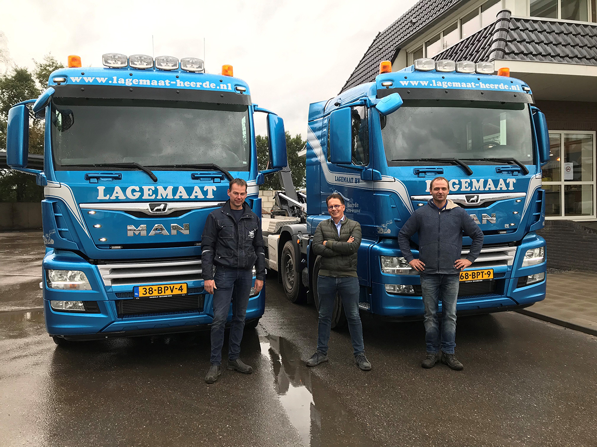 HEERDE - Lagemaat uit Heerde heeft voor de derde maal twee MAN TGS 43.510 8x4 BB WS containerauto’s in gebruik genomen. De trucks zijn geleverd door MAN dealer Roordink Bedrijfswagens, dat gevestigd is in Zwolle.