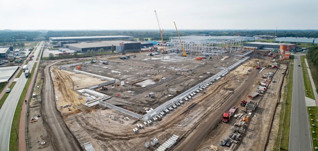 Nu de staalconstructie grotendeels staat gaat er gewerkt worden aan het wind- en waterdicht maken van het pand. Vanaf volgende week worden hiervoor de eerste dakplaten gemonteerd. Medio volgend jaar wordt gestart met de inrichting van de mechanisatie. Eind 2022/begin 2023 kan het nieuwe, gemechaniseerde distributiecentrum in gebruik worden genomen.