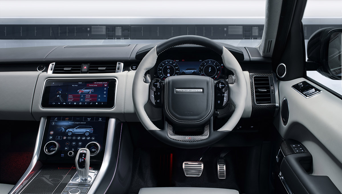 Het vakmanschap van het SV Bespoke-team is ook te zien in het interieur, dat is voorzien van speciaal voor deze versie gecreëerde, verchroomde SV Bespoke-badges op de B-stijlen, zwart geanodiseerde metalen schakelpeddels en verlichte dorpellijsten met het opschrift ‘Ultimate Edition’. Het interieur afgewerkt in Ebony en Cirrus is verder verfraaid met lichtgewicht Performance-stoelen voorzien van het SVR-logo in reliëf en bekleed met Ebony Windsor-leder en contrasterend Suedecloth.