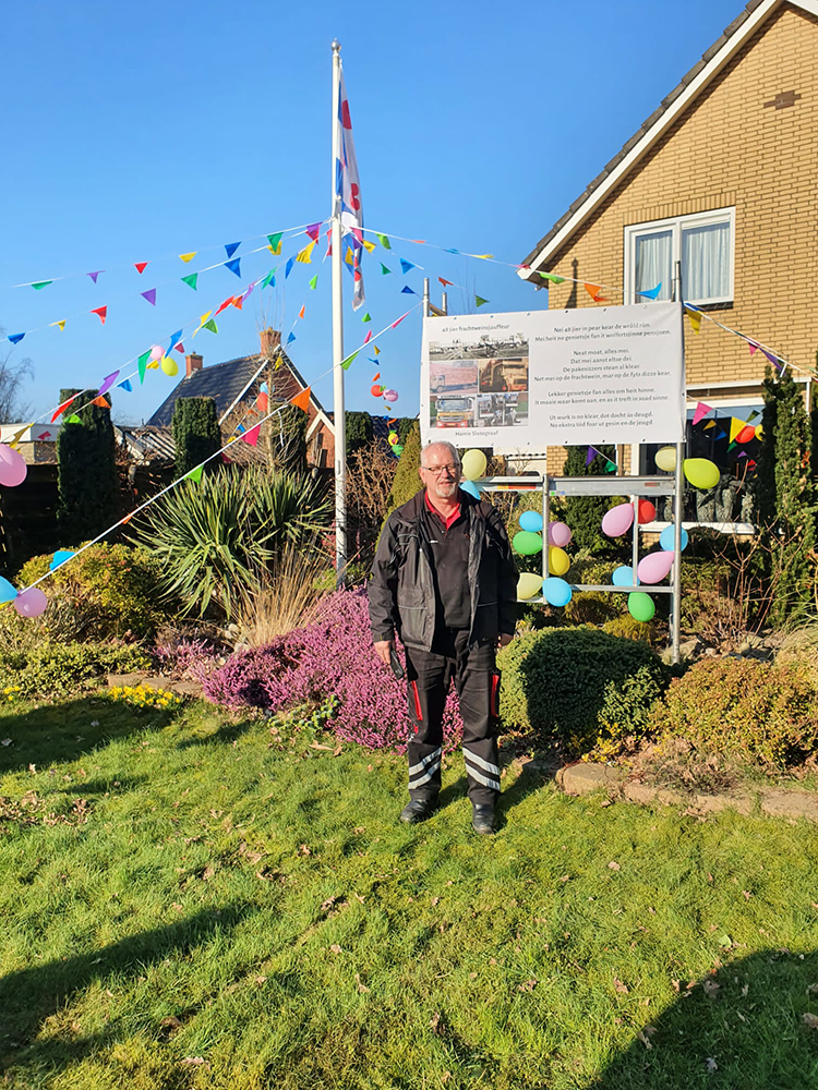 NOORDHORN - Juni 1977 kwam Harrie Slotegraaf in dienst van Koopman Transport uit Noordhorn. Bijna 45 jaar reed hij als chauffeur zo'n zes miljoen kilometers bijelkaar en gaat hij met pensioen. Voor zijn lange loopbaan was Harrie werkzaam bij W. de Vries uit Grootegast.