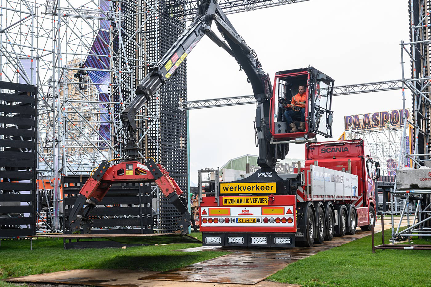 “Ons werk bestaat voor een deel uit intern transport van materiaal tussen de vestigingen en voor een ander deel uit de aflevering van onze producten bij klanten op bouwlocaties en festivalterreinen. Dat doen we grotendeels met eigen trucks en verder hebben we een aantal vaste partners die voor ons rijden. Met deze Scania V8 erbij hebben we nu zes voertuigen waarvan de helft Scania. Maar dat gaat weer veranderen. Want inmiddels hebben we nog weer twee nieuwe Scania’s besteld die tegen het einde van dit jaar geleverd moeten worden”, vertelt directeur Swanenberg’s IJzer Adriaan Keijzer.