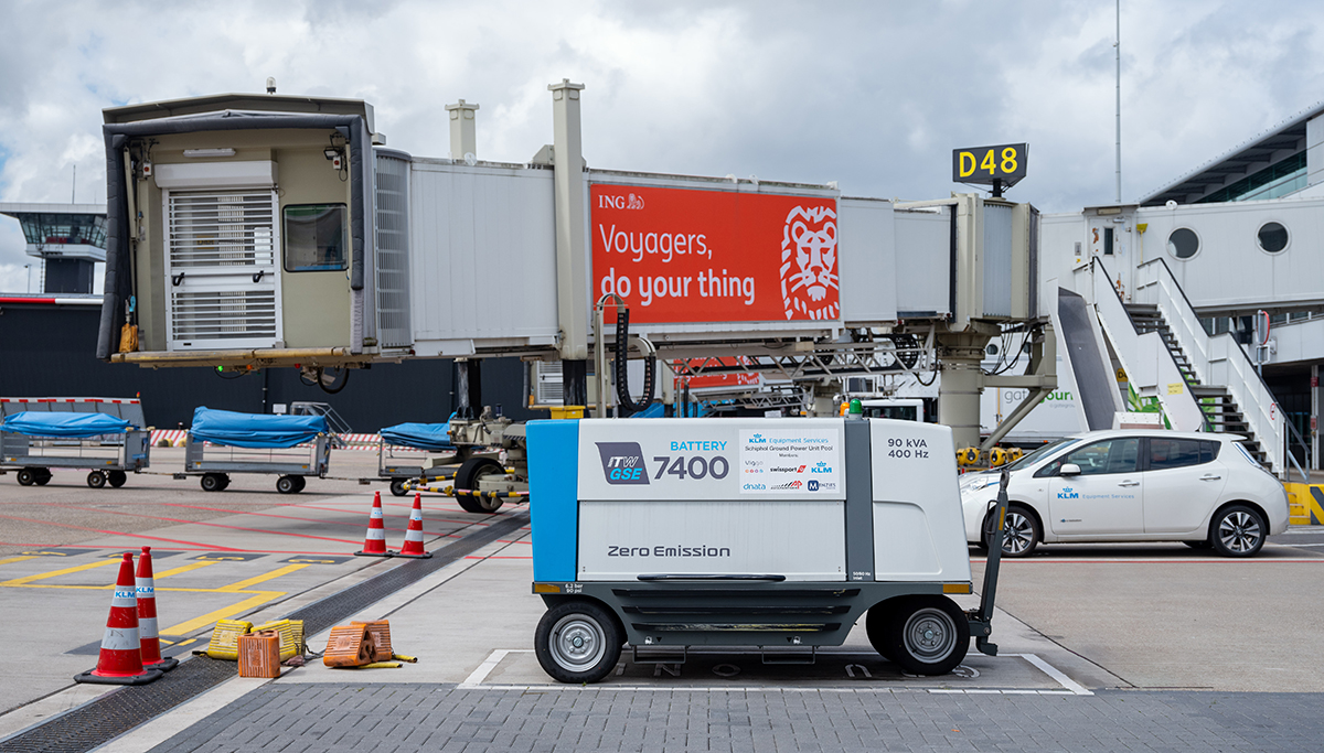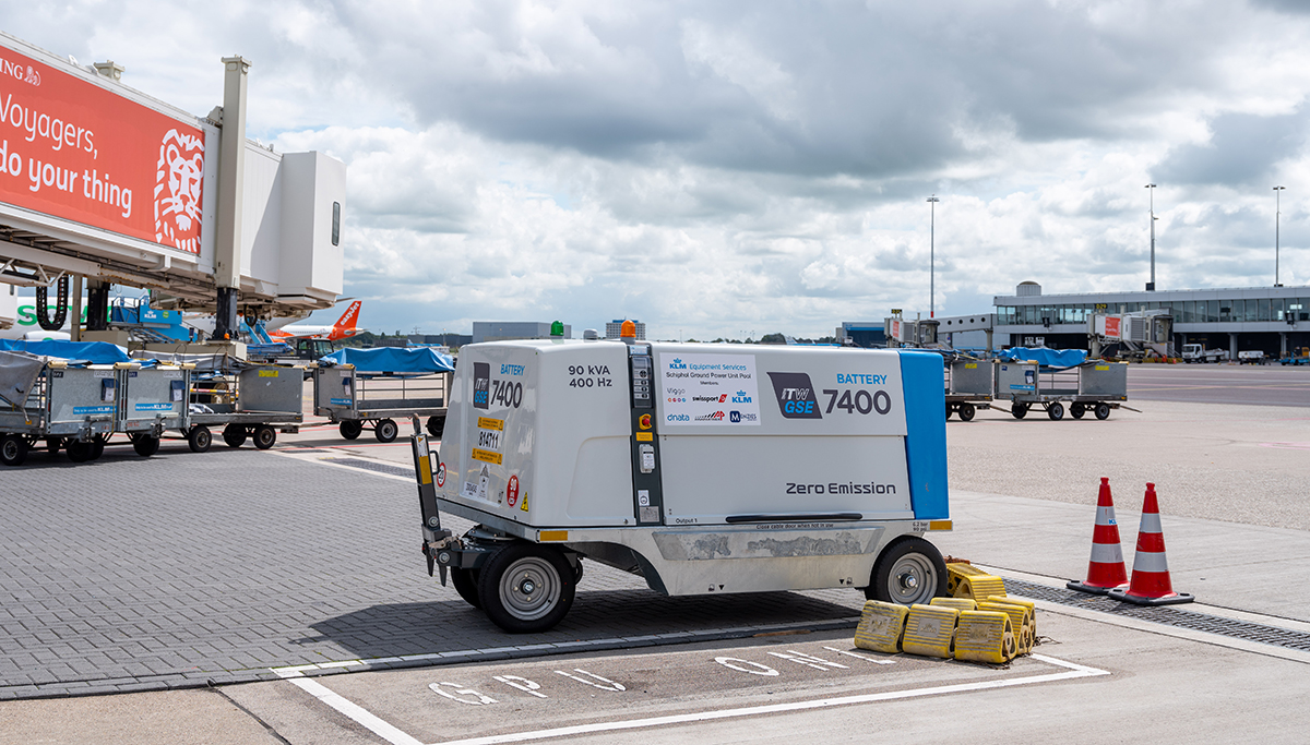 Nieuwe elektrische apparatuur voor vliegtuigen aan gate op Schiphol