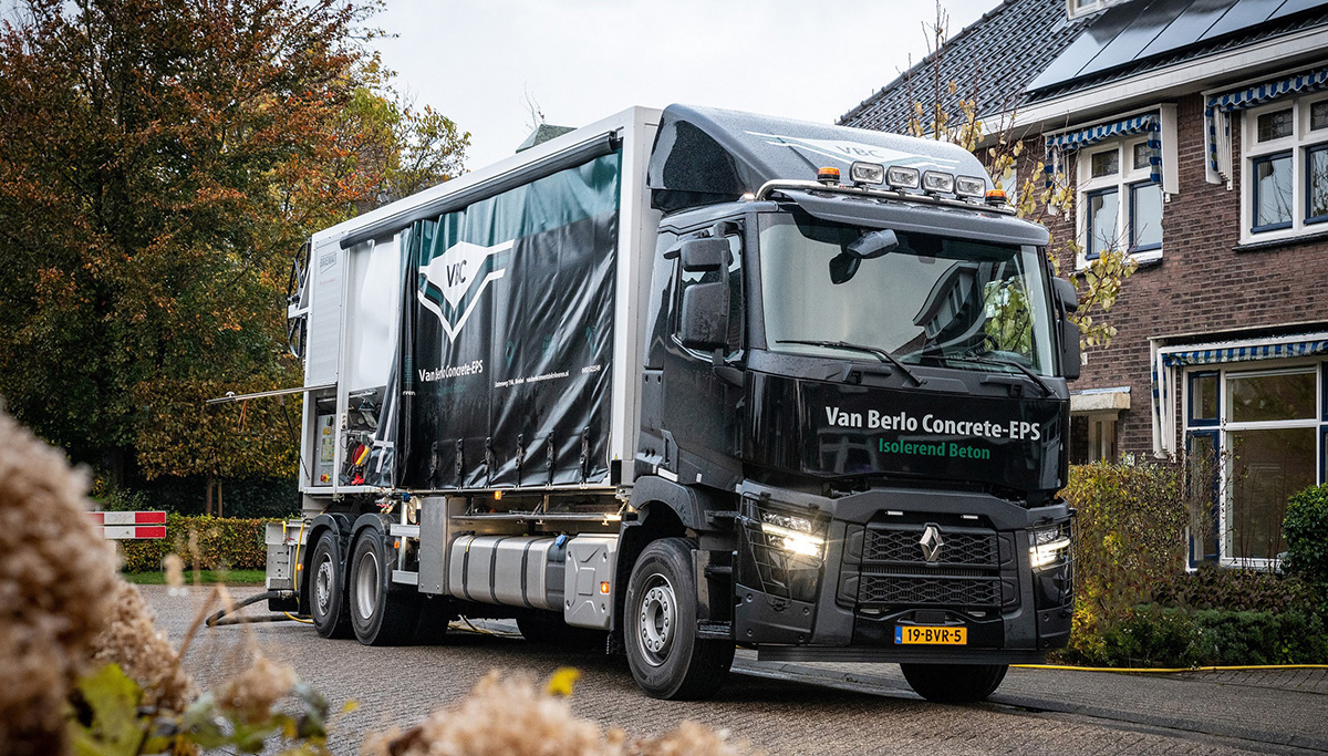 Randy van Berlo stort met zijn bedrijf Van Berlo Cementdekvloeren al ruim twintig jaar cementdekvloeren bij particulieren en bedrijven. Met de aanschaf van deze Renault Trucks C met speciale Bremat-opbouw vergroot Van Berlo zijn dienstenpakket. Bremat, specialist in mobiele mortelcentrales, heeft een machine ontwikkeld voor de productie van vloeibare EPS-mortel waarmee isolatievloeren worden gemaakt.