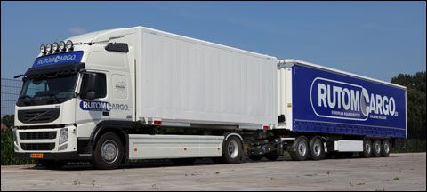 RUTOM Cargo heeft gekozen voor een Volvo FM Methaan-Diesel bakwagen, die voorzien wordt van een dolly, waarachter een normale 13,60 meter oplegger wordt gekoppeld. “Wij willen een maximale beladingsgraad, gekoppeld aan maximale flexibiliteit”, aldus Tom van den Broek.