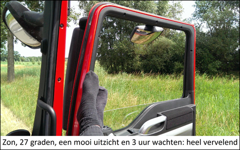 Toch is er een beroepsbeschrijving die niets met rijden, maar alles met transport te maken heeft. In mijn huidige baan moet ik nog wel eens wachten. Op instructies, lading of papieren. Er is altijd wel wat. Soms niet erg, soms tot gek makens toe. Tijdens één van die wachtsessies twitterde en facebookte ik, uit ballorigheid, een foto van de plek waar ik nú weer stilstond.