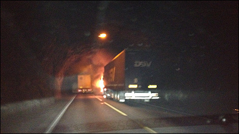 Naast de brand zou er ook een aanrijding in de 11,5 kilometerlange tunnel hebben plaatsgevonden. Dit alles gebeurde zo'n 3,5 kilometer in de tunnel. De automobilisten werden door rook en slecht zich opgesloten in de tunnel. De politie hield via mobiele telefoons contact met deze mensen en adviseerde ze om laag bij de grond onder dekens te blijven.