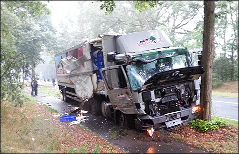 De vrachtwagen was onderweg van Rotenburg in de richting van Scheeßel toen hij eerst aan de rechterkant van de weg een boom raakte om vervolgens tegen een andere boom tot stilstand te komen.