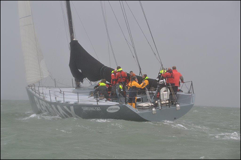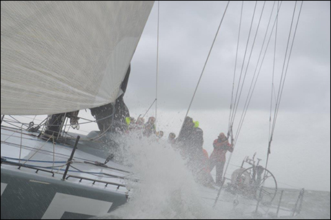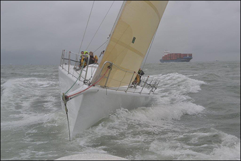 Daar aangekomen werden de voorzeilen gehesen en scheerden de schepen door de woeste golven langs de Nederlandse en Belgische kust. De aanwezige pers werd gevraagd mee te helpen met het trimmen van de zeilen, het sturen van de boot en nog veel meer. Het was eigenlijk de bedoeling om er een wedstrijd van te maken, maar daar werd vanwege de weersomstandigheden vanaf gezien. De zeilpakken kwam goed van pas. Ze boden volop bescherming tegen de regen en de bakken boegwater die op zijn tijd over het dek spoelden.