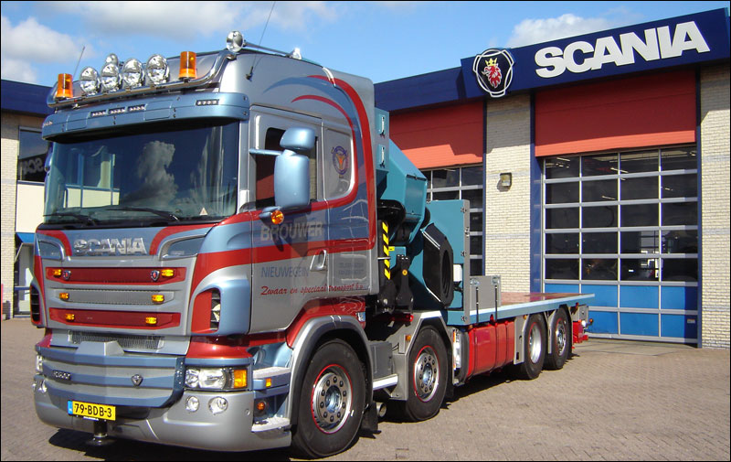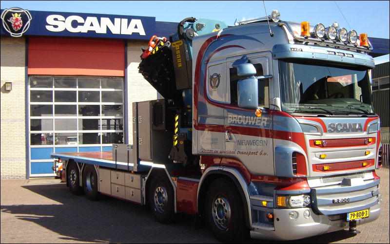 Brouwer Zwaar en Speciaal Transport B.V. nam halverwege vorig jaar al een indrukwekkende R 730 vijf-asser in gebruik. Onlangs is daar een nieuwe Scania R 500 vier-assige motorwagen aan toegevoegd met een zware Palfinger laadkraan.