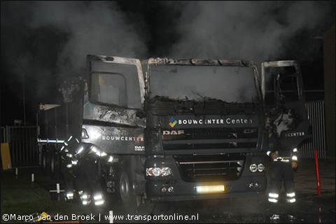 Volgens de chauffeur van de vrachtwagen, en de brandweer, is de brand door kortsluiting in de zekeringkast ontstaan.