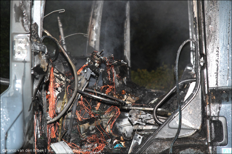 De vrachtwagen was slechts enkele maanden oud en is volledig uitgebrand.