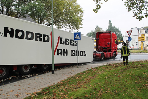 Mogelijk heeft de Bulgaarse chauffeur door een technisch defect zijn koeltrailer verloren op de Emmerich Strasse in Duisburg.