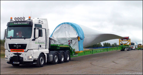 WIJCHEN - Een van de jongste spelers op het gebied van windturbine vervoer is het Duitse bedrijf A.M. Kran Wind uit Schwedt ot Heinersdorf.