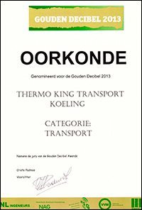 Op 5 november 2013 zijn de Gouden Decibel Awards uitgereikt. Voor Thermo King Transportkoeling waren Benno ten Dam en André van Asselt aanwezig. Toen het eenmaal de beurt was aan de categorie transport, was hun blijdschap groot. CryoTech was niet alleen genomineerd, maar werd deze avond officieel tot winnaar uitgeroepen. Uit handen van Ed Nijpels namen beide heren de award in ontvangst.