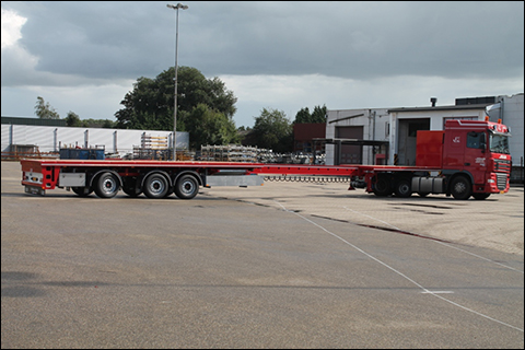 Pacton heeft recent twee vlakke uitschuifbare Floor opleggers geleverd aan van Keulen Transport BV uit Middelburg. De beide Floor opleggers zijn 7,45m uitschuifbaar en daarmee geschikt voor het transport van lange ladingen. Door gebruik te maken van een zware achttien tons nek is het totale GVW 45 ton geworden. De randprofielen bestaan uit UNP160 profielen en zijn voorzien van twee keer dertien stuks rongkokers(96.66.6mm) en twee keer dertien stuks TUV gekeurde acht tons klapbare bindogen.