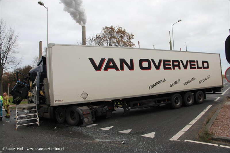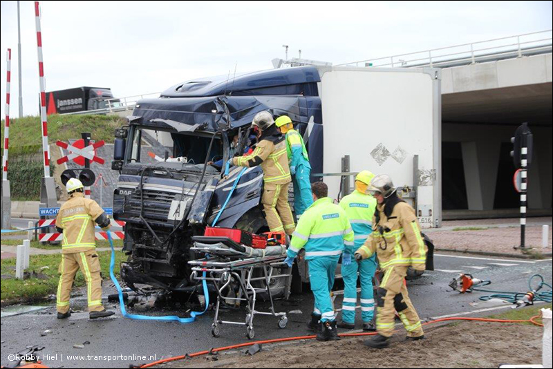 De chauffeur is door de brandweer uit zijn benarde positie bevrijd en overgebracht naar het ziekenhuis.