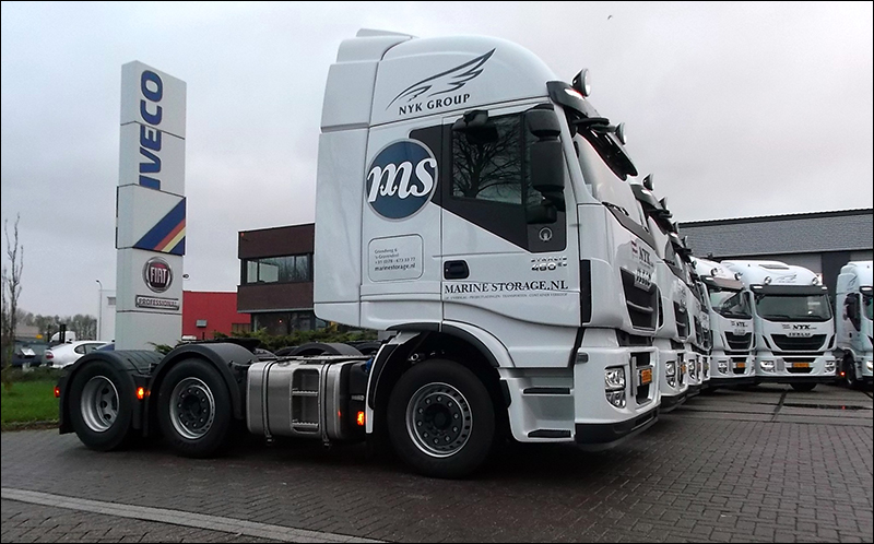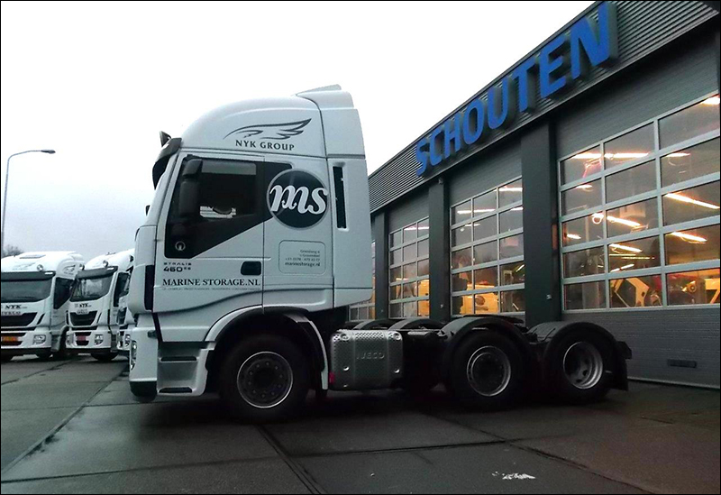 De 10 nieuwe IVECO’s Stralis Hi-Way in het wagenpark van het bedrijf uit ‘s-Gravendeel zijn voorzien van 460pk sterke Cursor 11 motoren die voldoen aan de Euro-6 emissienorm, zonder de toepassing van een EGR-systeem. De voertuigen zijn allemaal uitgerust met een Active Space cabine, de grootste uit het gamma van de IVECO Stralis. Hierin hebben de chauffeurs van Marine Storage alle ruimte die ze nodig hebben. Aan de buitenkant van de tien witte IVECO’s is de subtiele maar toch opvallende bestickering aangebracht. IVECO Schouten vestiging Spijkenisse leverde de voertuigen af.