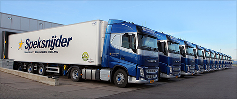 Speksnijder Transport uit Bodegraven is specialist in ‘just-in-time’ distributie van koel- en diepvrieslevensmiddelen en bovendien van doe-het-zelf artikelen. De onderneming heeft dit jaar vijftien nieuwe Volvo’s FH in gebruik genomen. De aflevering is gedaan door Van Dijk Woerden.