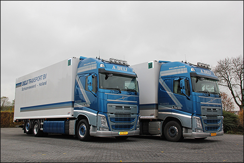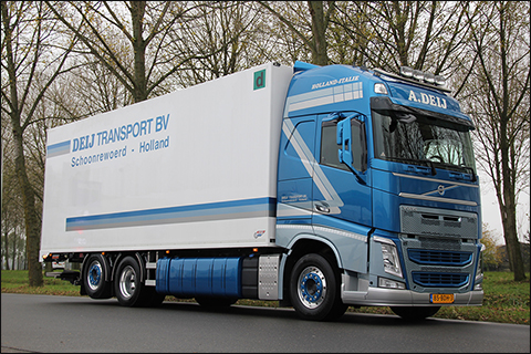 In december 2012 besloot Arno Deij twee nieuwe Volvo’s FH aan te schaffen. “Het betreft een vervanging in ons wagenpark: een Volvo FH 460 6x2 Euro 6 en een Volvo FH 460 4x2 Euro 6. We hebben bewust gekozen voor Euro 6 in verband met de laatste milieueisen en zijn met deze twee nieuwe trucks voorbereid op de toekomst. De beide Volvo’s hebben een Globetrotter XL-cabine. We hebben op onze ritten altijd dubbele bemanning, de werkomstandigheden voor de chauffeur moeten daarom zo goed mogelijk zijn. De nieuwe Volvo FH biedt een enorm comfortabele werkplek met volop ruimte, extra opbergruimtes en goede bedden. Ook het zicht op de weg is sterk verbeterd ten opzichte van de vorige generatie Volvo FH. De chauffeurs hebben al aangegeven heel erg tevreden te zijn met hun nieuwe werkplek, zowel bij dag als bij nacht.”