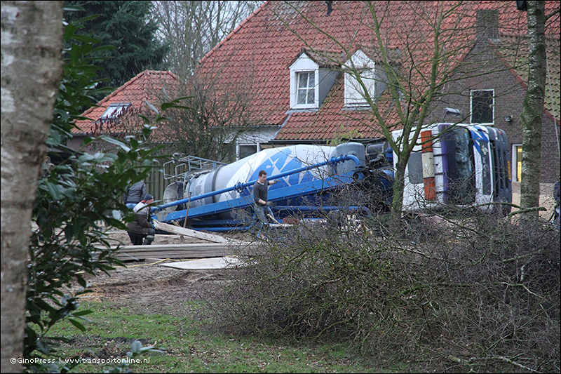 SINT MICHIELSGESTEL - Op een bouwplaats in Sint Michielsgestel is dinsdagmiddag 17 december een betonpompmixer op zijn kant gegaan. Hoe dit heeft kunnen gebeuren is nog niet bekend.