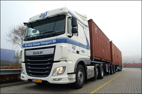HOOGVLIET - Ook voor het LZV transport is De Jong-Grauss Transport volledig up-to-date. De nieuwe DAF XF 460 FTG trekker, uitgevoerd met de 12,9 liter PACCAR MX-13 motor, is speciaal aangeschaft voor het LZV transport.