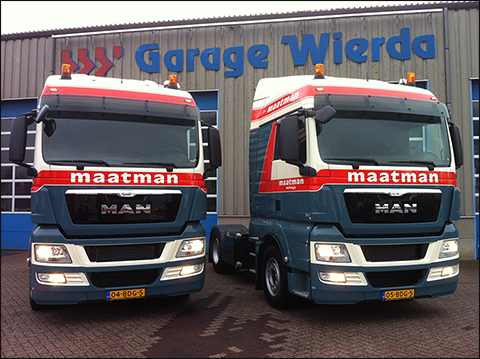 WOLVEGA - Zo vlak voor de Kerst zijn twee MAN TGX euro vijf trekkers afgeleverd aan Maatman Veevoeders en Kunstmest uit Wolvega. Een goede relatie met de dealer en korte lijnen zijn erg belangrijke beweegredenen geweest voor Maatman.
