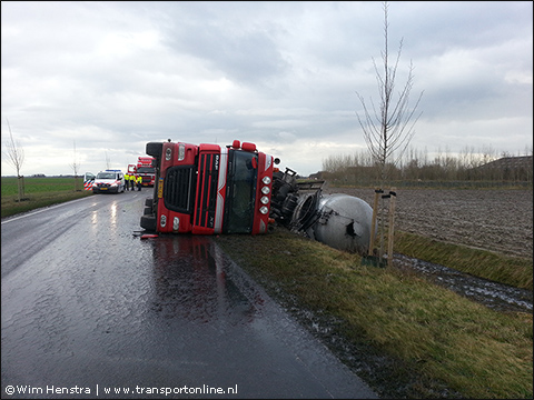 De vrachtwagen vervoerde ongeveer 36 ton varkensmest. Dit is deels in een sloot en deels over de weg terecht gekomen, meldt de politie.