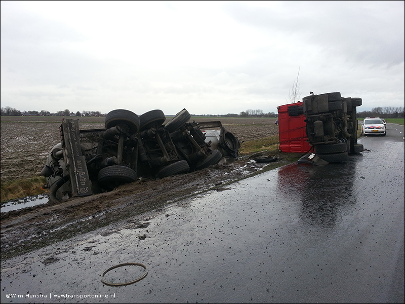 ZANDEWEER - Op de N999 tussen Garsthuizen en Uithuizen is ter hoogte van Zandeweer een vrachtwagen met mest gekanteld. De rijbaan is in beide richtingen afgesloten tussen de N46 naar Eemshaven en Uithuizen.