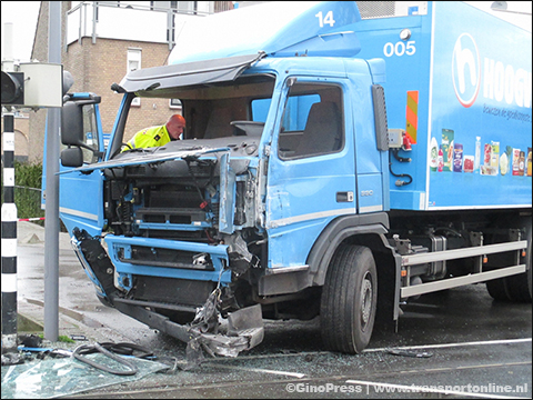 Vrachtwagen botst met tram in Rotterdam