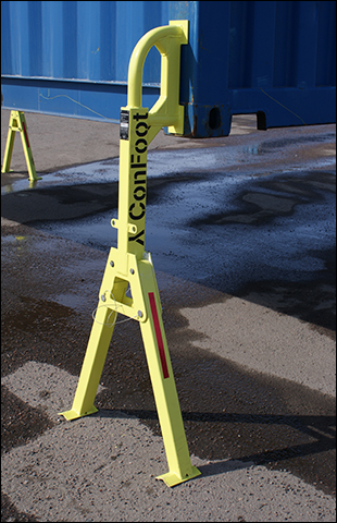 ConFoot-Leg® verwisselbare containerpoten zijn een gepatenteerde Finse uitvinding die het mogelijk maakt om zeecontainers eenvoudig van/op trailers te laden/lossen zonder kostbare hulpmiddelen.