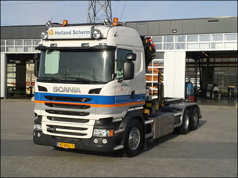 ROTTERDAM - Aan Holland Scherm is recentelijk een nieuwe Scania R 450 highline euro 6 geleverd. De nieuwe Scania is geleverd door Scania Alblasserdam en opgebouwd bij VSU Utrecht. De vrachtwagen is voorzien van een VDL kabelsysteem en een Palfinger PK 34002.
