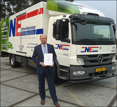 Het keurmerk werd overhandigd aan directeur Herman Bult. Transportbedrijf NE DistriService heeft zich toegelegd op de distributie van raamdecoratie binnen de Benelux. Dagelijks levert de onderneming met 40 vrachtauto’s meer dan 10.000 pakketten af bij woninginrichters, woonwarenhuizen en bouwmarkten. Hierbij ligt de focus op het leveren van toegevoegde waarde door een onbezorgd logistiek proces, dat volledig naar wens kan worden ingevuld.