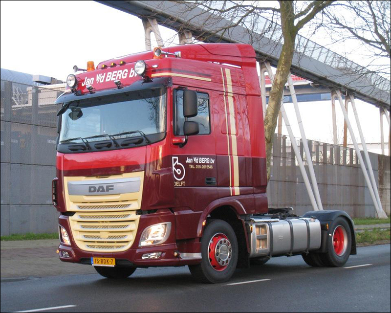 DELFT - Blom-DSW heeft onlangs vier nieuwe DAF XF410 FT Euro 6 Space Cab trekkers afgeleverd aan Jan van den Berg Transport uit Delft.