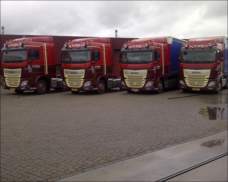 Vier DAF XF410 FT Euro 6 Space Cab voor Jan van den Berg Transport