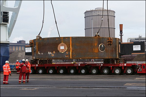 IJMUIDEN - Met een bijzonder transport is dinsdag bij Tata Steel in IJmuiden een omvangrijke operatie van start gegaan. “In zes maanden tijd wordt Converter 23 van de Oxystaalfabriek vervangen. Een grote klus”, aldus Annemarie Manger, Directeur Engineering & Site Services. Een converter is een groot vat waarin vloeibaar staal wordt gemaakt.