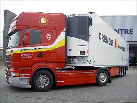 Ook op het gebied van koelmotoren gaat Cremers Coolcare continu met de laatste ontwikkelingen mee door alleen in schone en geluidsarme koelmotoren te investeren. Om haar kwaliteit en betrouwbaarheid te kunnen waarborgen maakt Cremers Coolcare al sinds de aankoop van de eerste koeltrailers in 2000 gebruik van de diensten van Thermo King. Momenteel is 85% van het wagenpark van het bedrijf uitgerust met Thermo King koelunits. Daar nemen zij de koelmotoren af en wordt het onderhoud gepleegd. “Bij aankoop van nieuw materiaal gaat de voorkeur uit naar de units van Thermo King, die ons de laatste technische specificaties biedt” aldus Frans Cremers. “Per jaar vervangen of breiden wij met gemiddeld 3 units uit”, vult Frans Cremers aan. Door in goed overleg te bepalen of het onderhoud door de werkplaats in Venlo of op locatie plaats vindt biedt Thermo King aan haar klanten veel flexibiliteit.