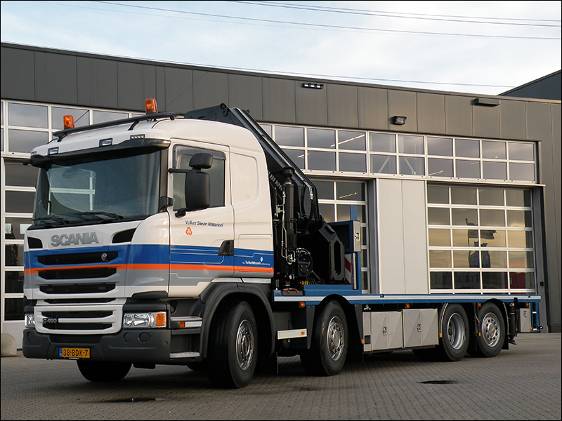 Volker Stevin Materieel is de materieeldienst en zelfstandige werkmaatschappij van VolkerWessels. Scania heeft een G 450 8X2*6 en een G 450 6x2*4 Euro 6 chassis afgeleverd met respectievelijk een 85 ton/meter en een 42 ton/meter Hiab kraan en laadbak opbouw. Wille in Barneveld verzorgde de opbouw. Ook is er een Scania P 280 6x2*4 Euro 6 in gebruik genomen met oprijwagen voor het vervoer van een freesmachine van KWS.