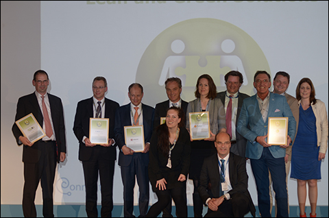De certificaten werden uitgereikt door Michiel Jak van TNO, voorzitter van de Lean and Green Solutions Toetsingscommissie, en Lean and Green Solutions Ambassadeur Marco van Gelder van KPN.