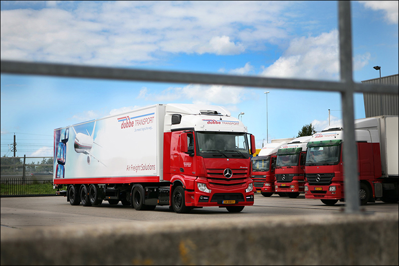 Vorig jaar oriënteerde Dobbe Transport zich bewust op nieuwe voertuigen met schonere Euro 6-techniek. De goede ervaringen met de trucks van Mercedes-Benz en de constructieve relatie met de lokale vestiging van Mercedes-Benz Dealer Bedrijven leidde tot de aanschaf van twee Atego’s 1621 L, een Antos 2543 L bakwagen, een Antos 1827 L en twee Actros trucks van het type 1842 LS. De vrachtwagens worden respectievelijk ingezet voor transporten in Nederland, de Benelux en Frankrijk. De jaarlijkse kilometrages lopen uiteen van 65.000 voor de Atego tot 125.000 voor de Actros.