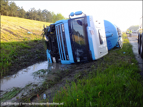 Vrachtwagen met suiker gekanteld langs A28