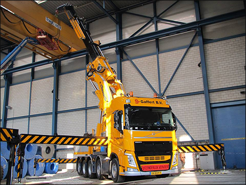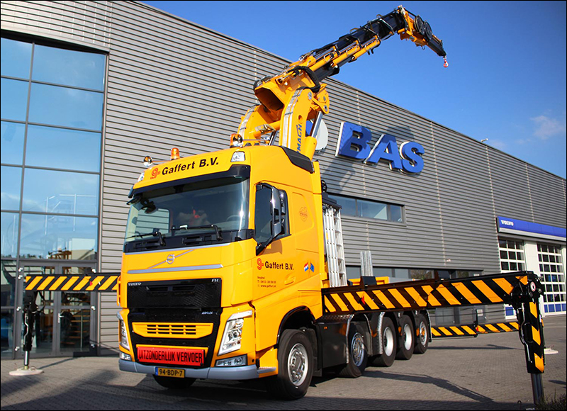 VEGHEL - Gaffert B.V. uit Veghel heeft onlangs een 5-assige Volvo FH 500 tridem met een Cormach 150 ton-meter kraan in gebruik genomen. De truck heeft een bijgeplaatste tweede gestuurde as en een gestuurde naloopas. Hierdoor is het voertuig uiterst wendbaar. De FH wordt ingezet voor het plaatsen van machines en bovenloopkranen in grote hallen en loodsen en werd geleverd door BAS Groep uit Veghel.
