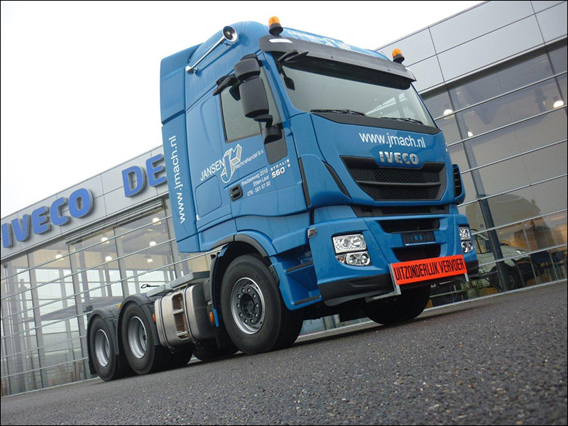 ETTEN-LEUR - Jansen Machinehandel uit Etten-Leur heeft een nieuwe IVECO Stralis in gebruik genomen. Deze zwaartransport trekker heeft een dubbel aangedreven achteras, de zogenaamde 6x4 configuratie, en is voorzien van een krachtige euro 6 motor met een vermogen van 560 Pk. Dit zorgt voor een indrukwekkend maximaal voertuigcombinatiegewicht van 120.000 kg.