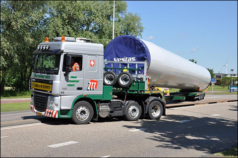DAMWOUDE - Windenergie is schoon en milieubewust, er worden dan ook steeds meer windmolens gebouwd om aan deze vraag te voldoen. Het transport over de weg van de diverse delen waaruit een windmolen bestaat, valt in verband met de afmetingen onder speciaal transport.