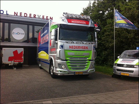 Verkeersschool Nederveen breidt haar wagenpark wederom uit . De uitbreiding is ingegeven door verandering in de wetgeving met betrekking tot het lessen met een automatisch schakelend voertuig. Nederveen heeft direct op deze wijziging ingespeeld en gekozen voor het inzetten van een zeer in het oog springende nieuwe DAF XF 460 Super Space Cab met automatisch schakelende AS-tronic versnellingsbak.