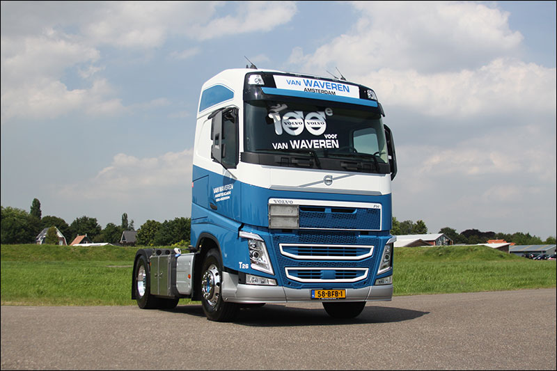 AMSTERDAM - Vrijdag 18 juli heeft Volvo Group Truck Center de 100e Volvo afgeleverd aan Van Waveren Transport uit Amsterdam. Vanaf de F88 tot aan de huidige nieuwe FH zijn van Waveren Transport en Volvo onafscheidelijk met elkaar verbonden.