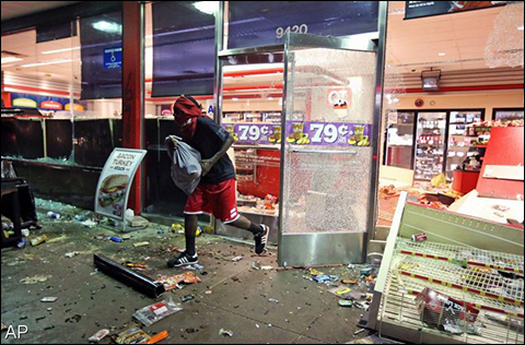 AMSTERDAM - Een nachtwake die was georganiseerd voor de dood van een Amerikaanse zwarte tiener die door de politie werd neergeschoten, is in de nacht van zondag op maandag uitgelopen op rellen. Dat meldt The Guardian. De menigte in Saint Louis sloeg autoramen in en plunderde winkels.