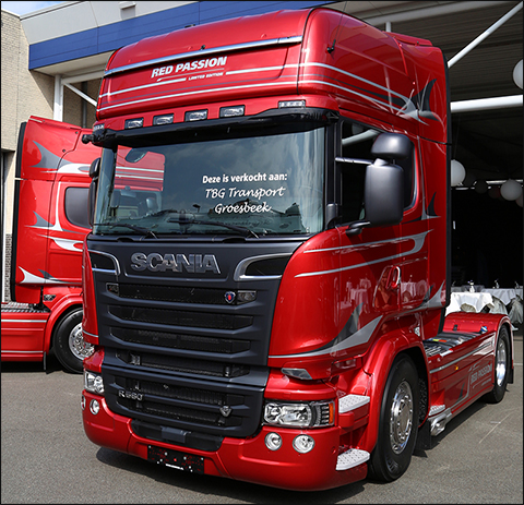 In het voorjaar introduceerde Scania voor haar klanten in de Benelux de Scania Red Passion Limited Edition in een gelimiteerde oplage van slechts 75 stuks. Onlangs werden de eerste drie exemplaren door Scania Zuid-Oost afgeleverd. Nummer 1 van 75 ging naar T.B.G Transport uit Groesbeek, nummer 2 van 75 werd in gebruik genomen door G. Karssemakers uit Boekel en de sleutels van nummer 3 van 75 werden in ontvangst genomen door Patrick van de Mark uit Beuningen.