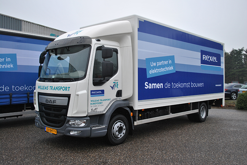 RIJKEVOORT - De nieuwe DAF LF is een talent in regionale distributie binnen Nederland. Willems Transport in Rijkevoort is daarvan al snel overtuigd geraakt. Sinds enkele weken rijdt dit transportbedrijf naar volle tevredenheid met een viertal DAF’s LF180 ‘dedicated’ voor elektrotechnische groothandel Rexel Nederland BV. Dat wil zeggen dat de auto’s zijn uitgevoerd in de net nieuwe huisstijl van de groothandel en dat Willems Transport planning en transport voor Rexel verzorgt. De nieuwe DAF’s LF zijn geleverd door ALLERS Bedrijfswagen in Venlo.