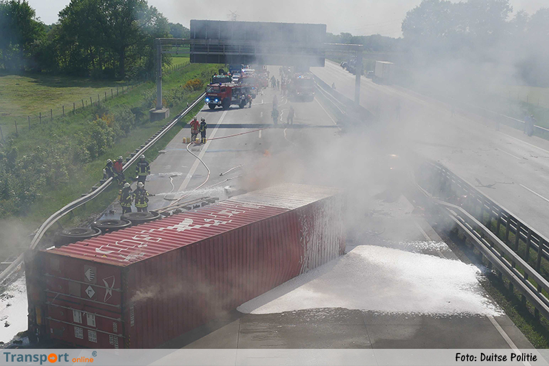 Duitse A1 richting Hamburg gesloten na brand in vrachtwagen met gevaarlijke stoffen